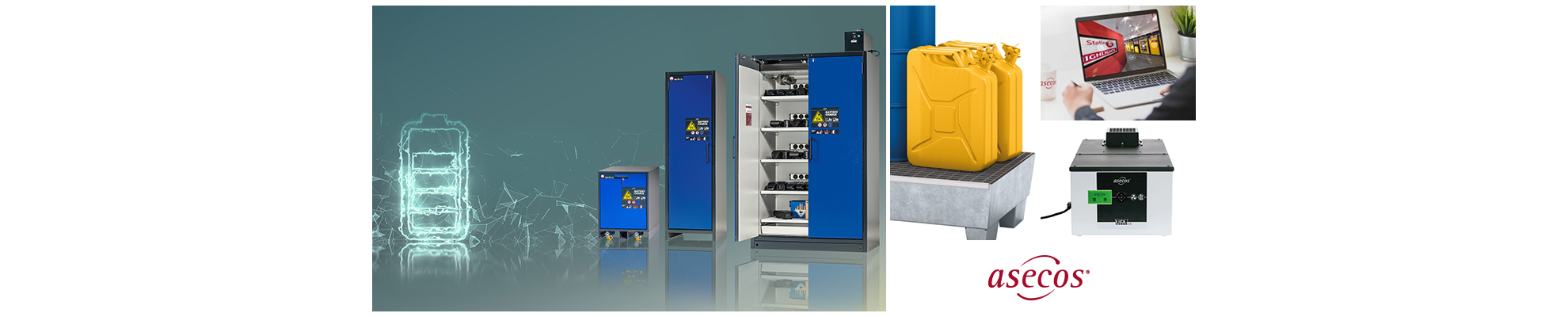 Der Name asecos steht für Sicherheit und Umweltschutz beim Umgang mit Gefahrstoffen und brennbaren Flüssigkeiten. Die Produktpalette des Gründauer Unternehmens reicht von feuerbeständigen Sicherheitsschränken über Produkte für das Gefahrstoffhandling bis hin zu Absauganlagen und Wannensystemen für die Gefahrstofflagerung. Mit eigenen Landesgesellschaften in den Niederlanden, Frankreich, Spanien, England und Italien sowie einem weltweiten Vertriebsnetz von Fachhändlern und Partnern stellt asecos die Nähe zum Markt sicher.