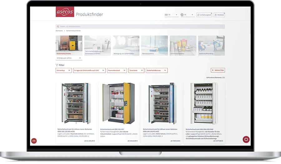 / Unternehmen / Neuigkeiten / asecos: Produktfinder mit neuen Funktionen